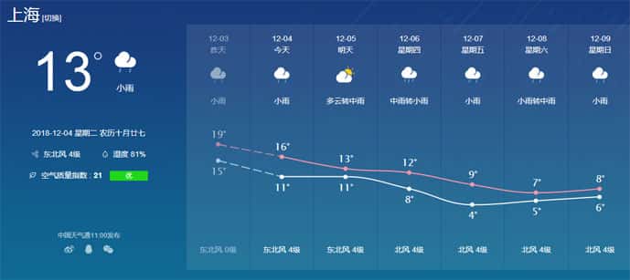 上海中心氣象臺預計,今天上海是陰轉多云天氣,明天,在冷空氣的作用下,將出現明顯的大風降溫天氣,降溫幅度可達5℃~7℃,局部地區有短時小雪。周五早晨最低氣溫將重回0℃冰點,可能會飄起較弱的零星小雪,但形成積雪的可能性不大。本周六和周日,市區最低氣溫約為-3℃,有冰凍,郊區可能冷到-6℃~-4℃,并有嚴重冰凍。