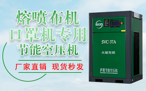 目前在熔噴布用的薩震空壓機型號最多得為22KW和37KW變頻空壓機,具體特點為