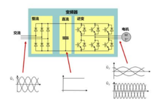 變頻技術就是把工頻交流電通過整流電路整流濾波成穩定的直流電,然后再通過逆變電路逆變成頻率可調節的交流電,最后輸出到變頻電機中。在變頻空壓機應用中,當正常工況用氣量大時,電機輸入頻率高轉速高,產氣量高;午間用氣量小時,電機輸入頻率低轉速低,產氣量小。