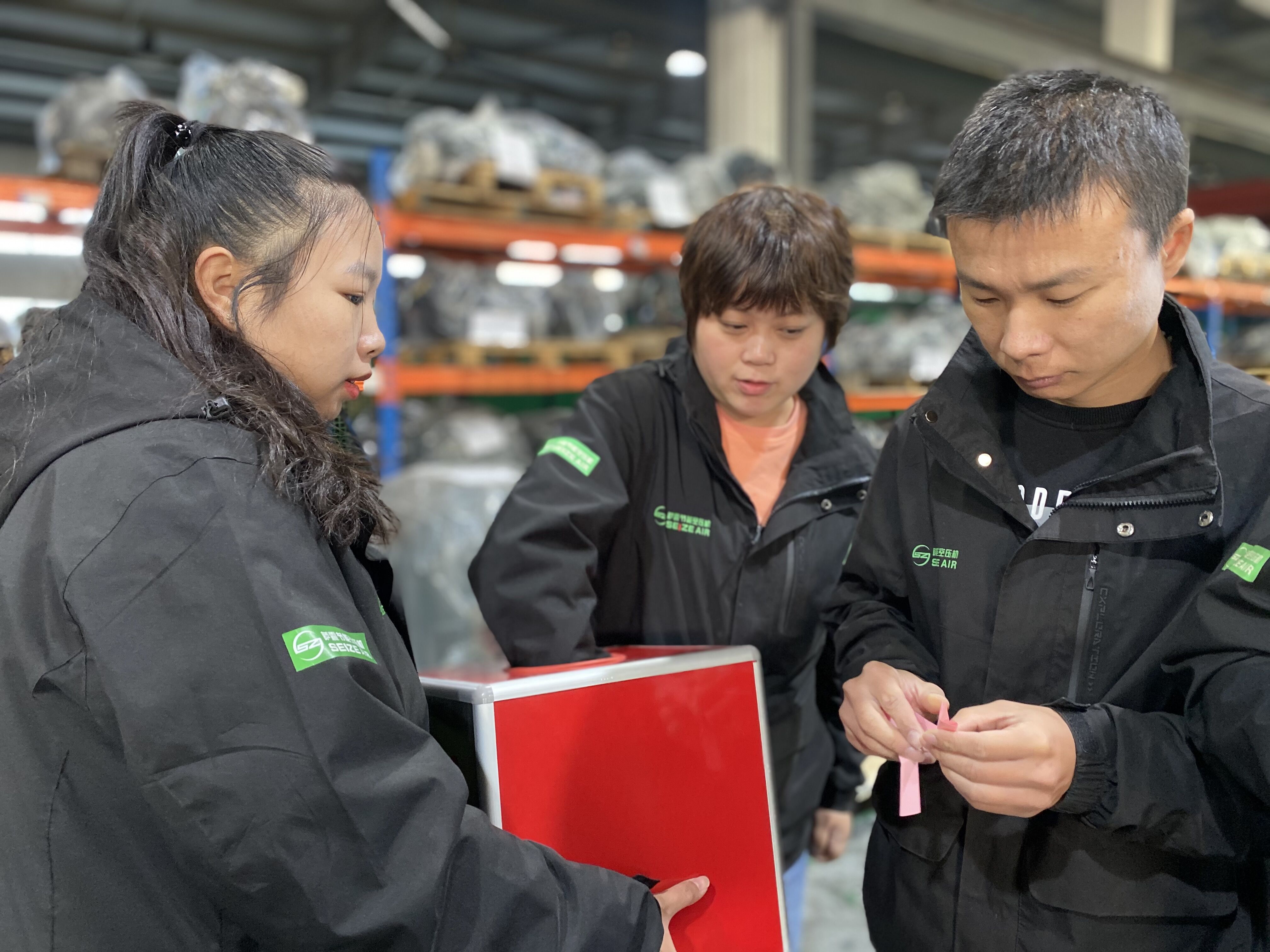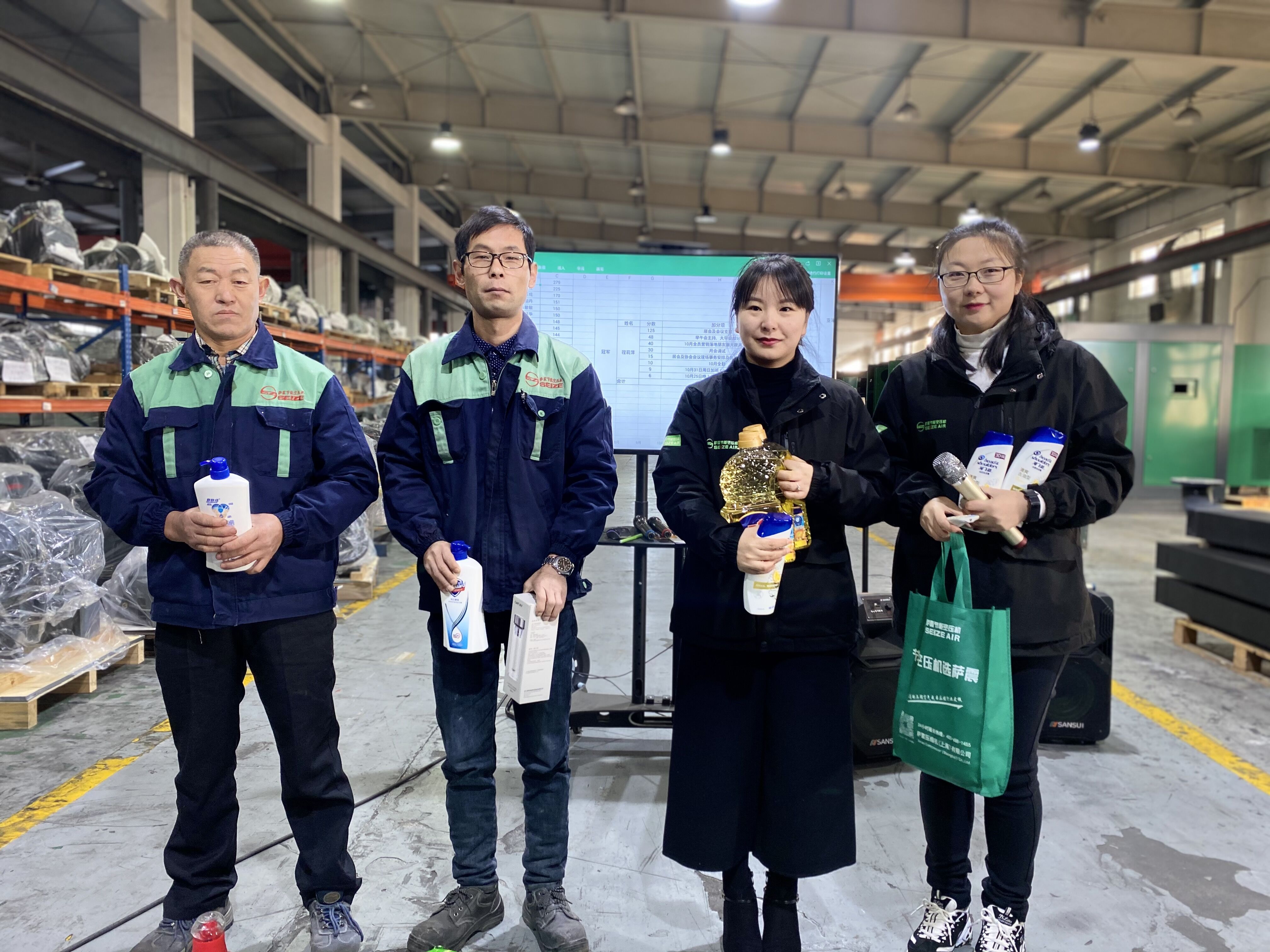 ▲積分前三與薩震節(jié)能空壓機(jī)總經(jīng)理程總合影▲
