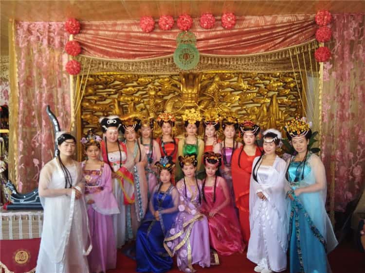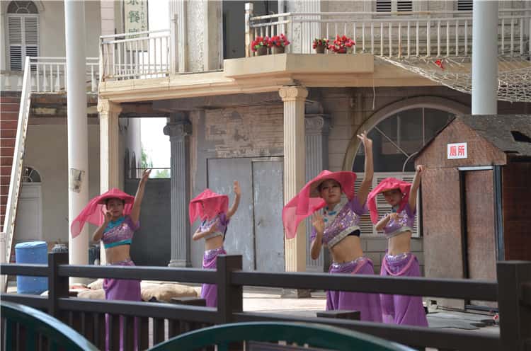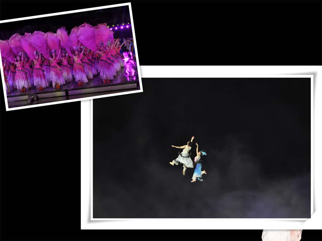歌舞表演:快看,整齊的舞蹈隊像一朵朵盛開海棠花,而空中的飛舞就像仙人似的,隨著風(fēng)自由的飄著,整個畫面實在是太美了。